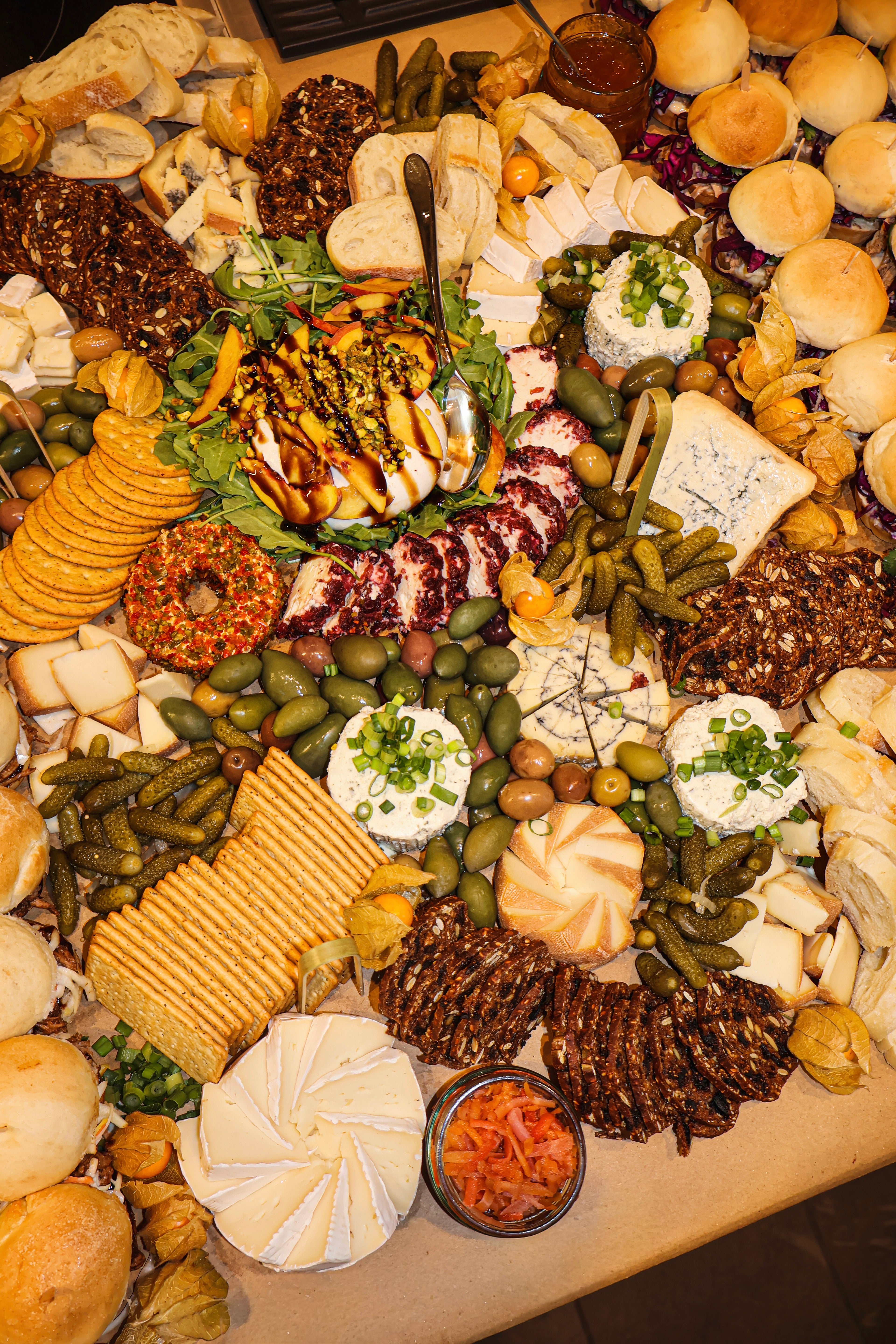 - Une section de fromages raffinés, incluant une burrata aux pêches et pistaches